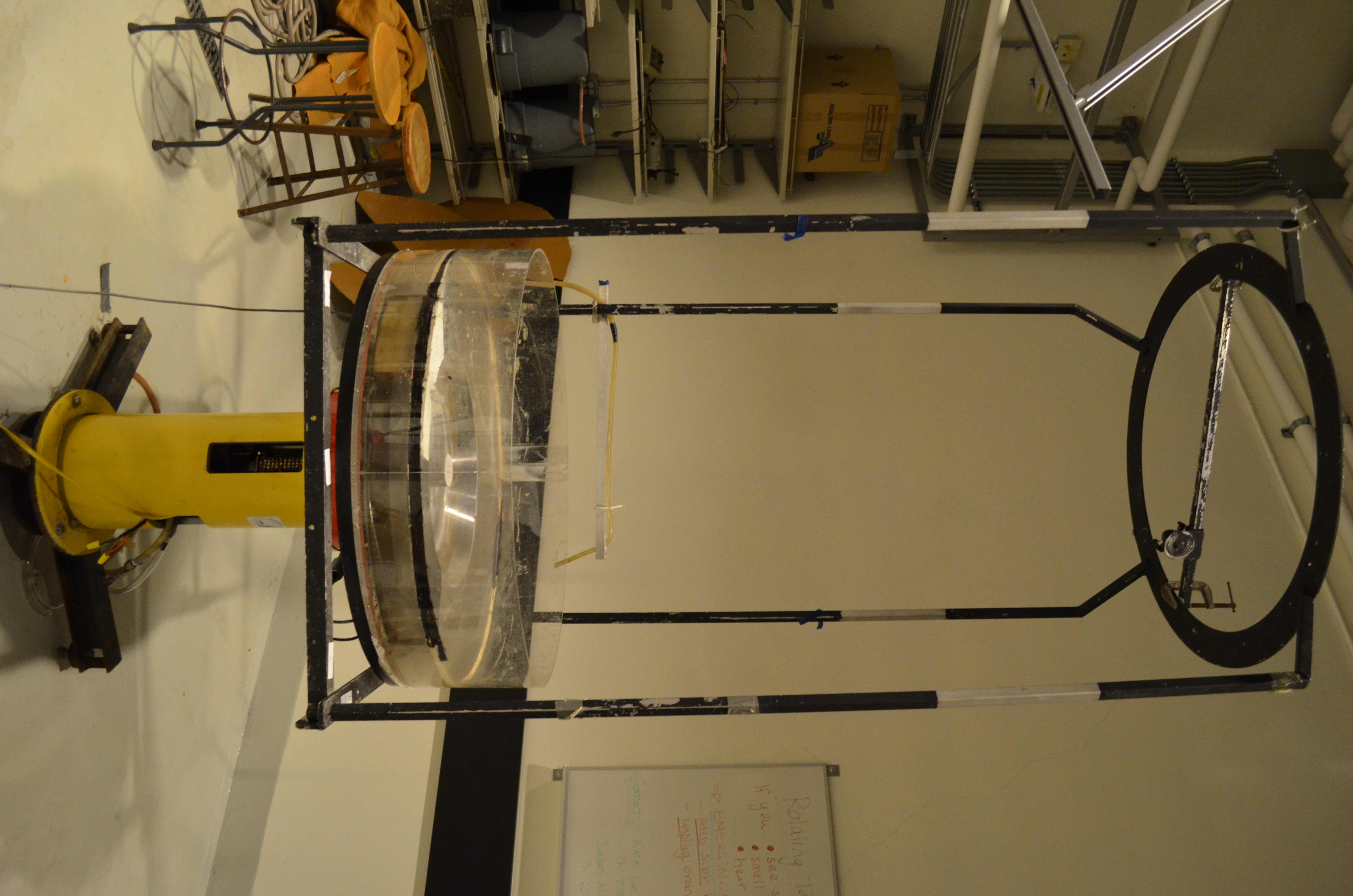 Medio: Usamos agua en vez de aire para modelar tanto océano como atmósfera (nunca he visto un túnel de viento giratorio, pero ¿tal vez sí hay?).