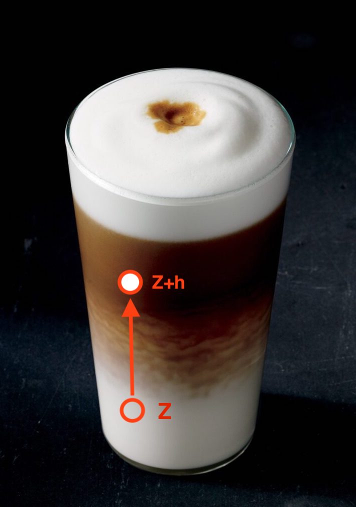 Muevo elemento de fluido en equilibrio de \(Z\) hasta \(Z+h\) \(\rightarrow\) fuerza boyante