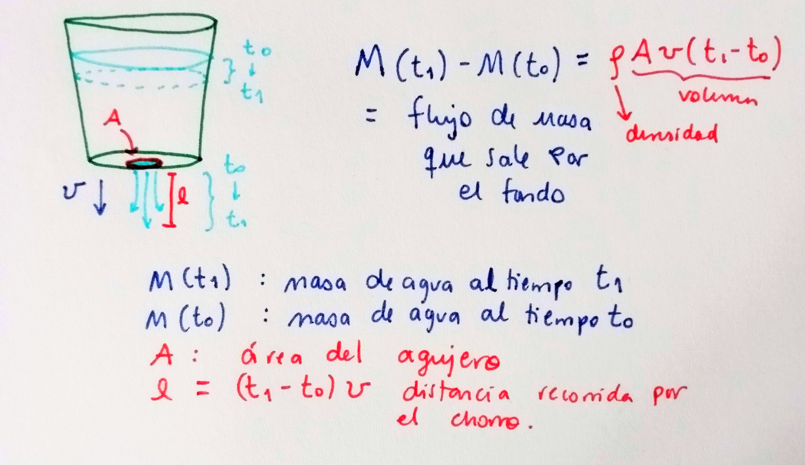 Cambio en la masa dentro de la cubeta es igual a la masa de agua que sale de la cubeta.