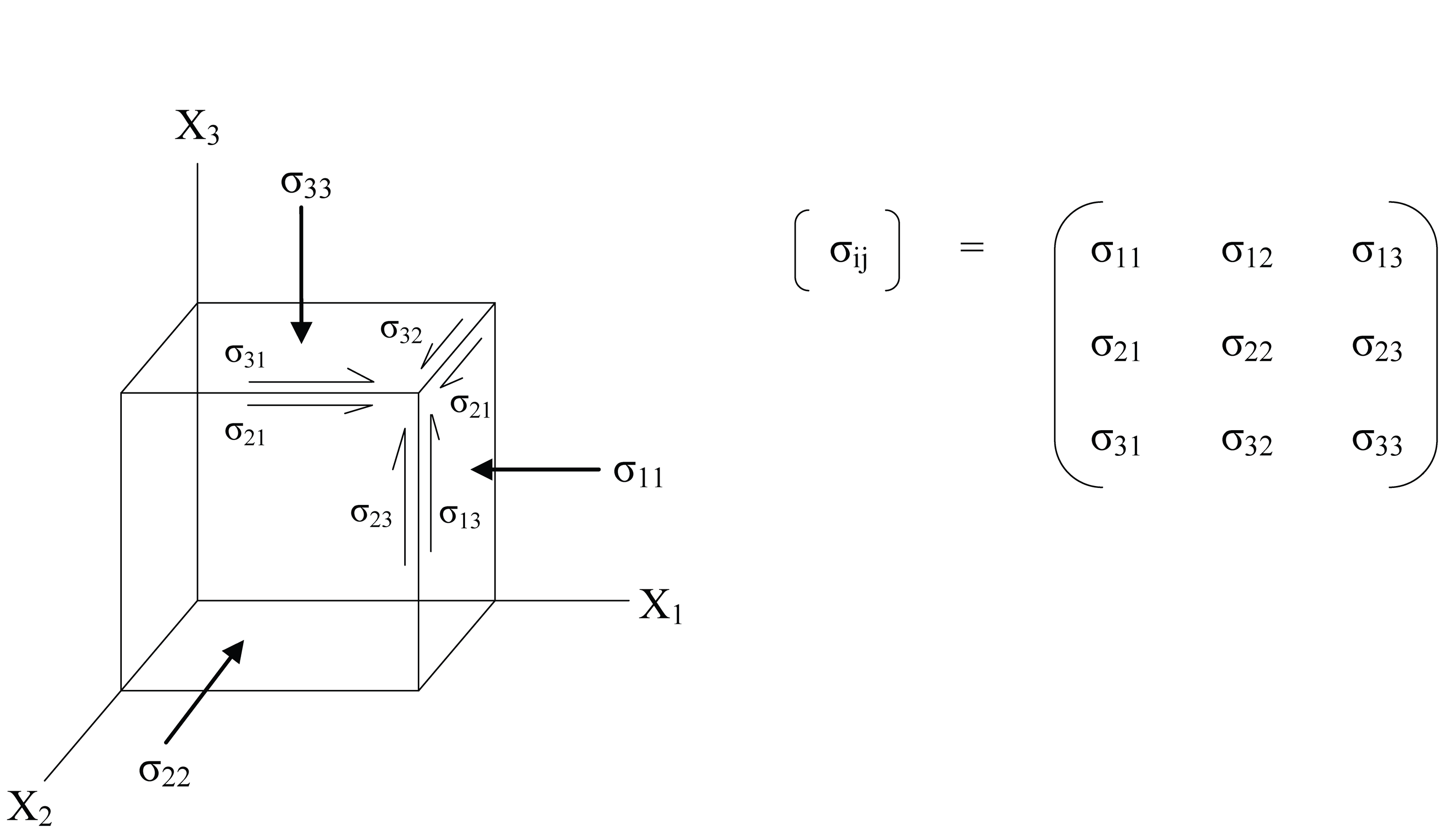 Tensor de esfuerzos: elementos en la diagonal, presión; fuera de la diagonal, esfuerzos cortantes